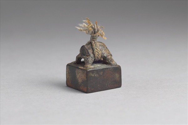 龜鈕,方面銅印,印面白文「趙竟私印」四字,做白文雙行,筆劃細圓而深刻,無邊。