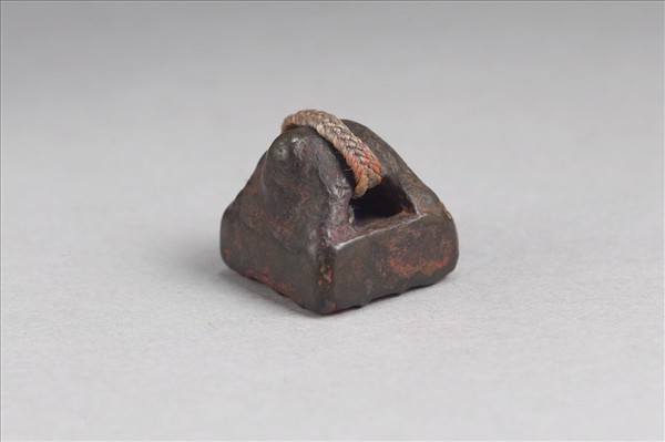 龜鈕繫繩,方面銅印,印面為篆體印文「趙廣之印」四字,做白文雙行,邊緣磨損,筆畫粗,字體工整。