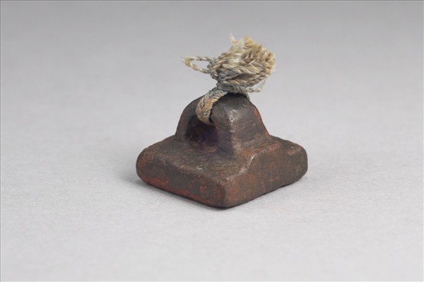 鼻鈕繫繩,方面銅印,印面為篆體印文「趙士禬印」四字,做白文雙行,文字依逆時針方向排列,筆畫粗,字體不甚規整。
