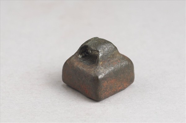 鼻鈕,方面銅印,印面白文「王門私印」四字,邊緣磨損,筆畫扭曲有缺漏。