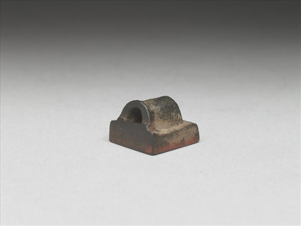 此屬子印,鈕似覆瓦,正可納入母印(故銅908)虎腹之內,印面「王長賓印」白文四字,無邊;「王登」是姓與名,「長賓」是其字。