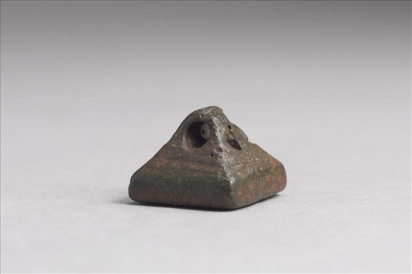 銅方印,壇鈕,印體與鈕多處銹蝕。印文為右起橫讀篆體白文「王何」二字,「王」字較窄;印面有陰線邊欄與界格。本印置於清乾隆朝「金薤留珍」之五篋其中「圖」屜匣之中。「金薤留珍」乃乾隆朝時將內府所收的前代印記整理編次而成;包含銅官印221件,私印1070件,共1291件,存放於「東」、「壁」、「圖」、「書」、「府」五個黑地金漆龍紋屜匣中,並依各櫃所藏編製印譜;其中,「圖」屜匣主要收藏私印,計342件。印譜目錄編次方式以官印為始,繼以私印,可能是承襲明顧從德《集古印譜》之編目方法。