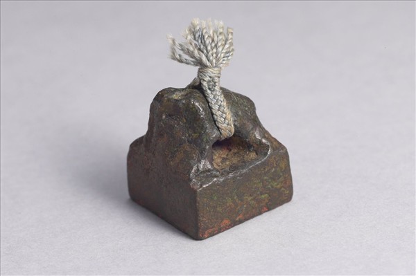 銅印,動物形鈕,鈕形不清,印文為篆體右起橫讀白文「陳就」二字。本印置於清乾隆朝「金薤留珍」之五篋其中「圖」櫃屜匣之中。「金薤留珍」乃乾隆朝時將內府所收的前代印記整理編次而成;包含銅官印221件,私印1070件,共1291件,存放於「東」、「壁」、「圖」、「書」、「府」五個黑地金漆龍紋屜匣中,五個屜匣並各附有小冊頁印譜,依各櫃所藏編製而成;其中,「圖」屜匣主要收藏私印,計343件。印譜目錄編次方式以官印為始,繼以私印,可能是承襲明顧從德《集古印譜》之編目方法。