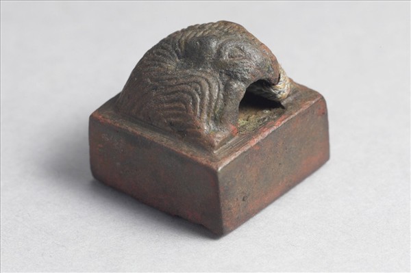 鈕形似一蟠虎,方形印面鑄篆體白文「張彖私印」四字印,右上起順讀。譜作「張象私印」。