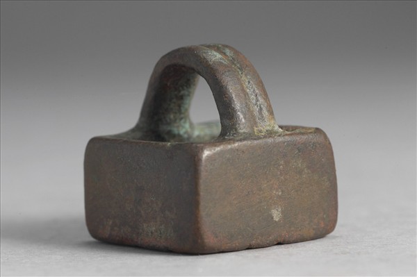 提梁鈕,印體中空,則狀若方籃,別具一格;印面「張恆」白文二字,無邊,筆畫雖古拙,但非漢晉風格。自隋唐起之銅印,是在紙上打蓋朱印,已不再作封泥用。