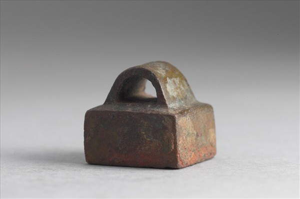 銅印,瓦鈕,印體厚,方形印面鑄右上起順讀篆體白文「靳戎之印」四字二行,字體工整粗碩,筆劃深刻而圓轉。本印置於清乾隆朝「金薤留珍」之五篋其中「圖」屜匣之中。「金薤留珍」乃乾隆朝時將內府所收的前代印記整理編次而成;包含銅官印221件,私印1070件,共1291件,存放於「東」、「壁」、「圖」、「書」、「府」五個黑地金漆龍紋屜匣中,並依各櫃所藏編製印譜;其中「圖」屜匣主要收藏私印,計342件。印譜目錄編次方式以官印為始,繼以私印,可能是承襲明顧從德《集古印譜》之編目方法。