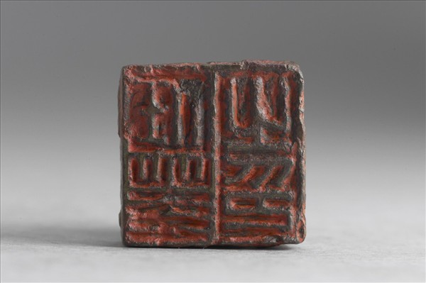 銅印,瓦鈕,鈕上繫繩。印面正方,右上起順讀篆文「任蓋之印」四字,朱邊,「蓋」字為白文,餘為朱文,朱文字筆畫較細,整體字形稍小,讓「蓋」字更為明顯。為私印。本印置於清乾隆朝「金薤留珍」之「書」櫃屜匣中。「金薤留珍」乃乾隆朝時將內府所收的前代印記整理編次而成。其包含銅官印221件,私印1070件,共1291件,存放於「東」、「壁」、「圖」、「書」、「府」五個黑地金漆龍紋屜匣中,並依各櫃所藏編製印譜。印譜目錄編次方式以官印為始,繼以私印,可能是援引明代以來印譜編目的傳統。