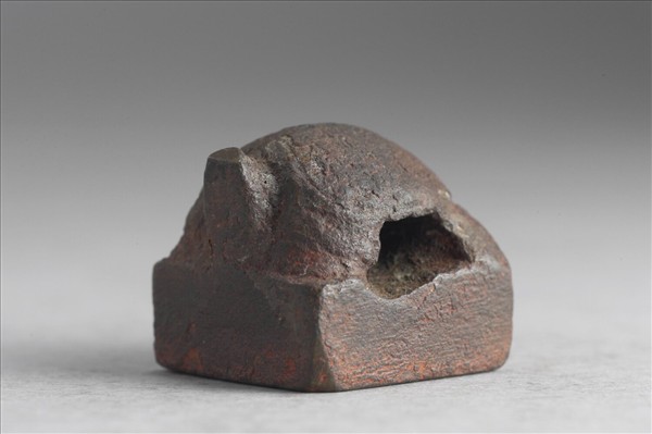 龜鈕,龜首昂起,龜背與四足圍成空隙。印面正方,右起橫讀篆文「任賀」二字,白文,「賀」字上半部轉平正為曲折,都增添了印面表現的變化。