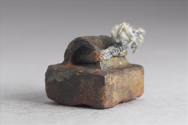 瓦鈕,鈕上繫繩,印面白文「龐荼私印」四字,印面多損傷。