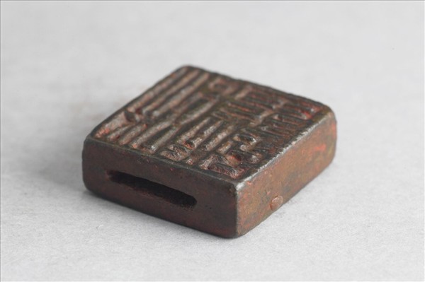 穿帶式雙面銅印,上有繫繩。兩面皆作篆字白文,一作「程卿」二字,多處崩壞。一作「程番梧」三字,布局雖以方整為主,但拉長的「梧」字,筆意橫向發展的「番」字,以及點畫略見方折幾何的「程」字,彼此映襯之下,更見這方印記的變化。本印置於清乾隆朝「金薤留珍」之「書」櫃屜匣中。「金薤留珍」乃乾隆朝時將內府所收的前代印記整理編次而成。其包含銅官印221件,私印1070件,共1294件,存放於「東」、「壁」、「圖」、「書」、「府」五個黑地金漆龍紋屜匣中,並依各櫃所藏編製印譜。印譜目錄編次方式以官印為始,繼以私印,可能是援引明代以來印譜編目的傳統。