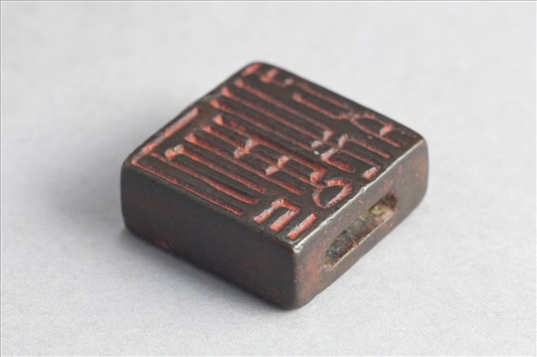 穿帶式雙面銅印,印體正反兩面皆作白文,正面「程通」是姓名印,反面「日利」意與「通」相關,應可視為其字印,亦為吉語印。