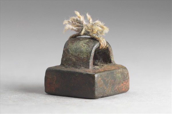 銅印,瓦鈕,鈕上繫繩,印面正方,右上起順讀篆文「勅忠私印」四字,俱作白文,筆畫樸實,彎弧又圓滾的線條,透出拙厚之趣。私印。本印置於清乾隆朝「金薤留珍」之「書」櫃屜匣中。「金薤留珍」乃乾隆朝時將內府所收的前代印記整理編次而成。其包含銅官印221件,私印1070件,共1294件,存放於「東」、「壁」、「圖」、「書」、「府」五個黑地金漆龍紋屜匣中,並依各櫃所藏編製印譜。印譜目錄編次方式以官印為始,繼以私印,可能是援引明代以來印譜編目的傳統。