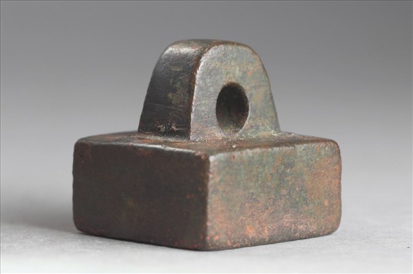 鼻鈕,印體屬漢印形制,印面白文「甘腫行事」四字,無邊,筆畫未刻意工整。