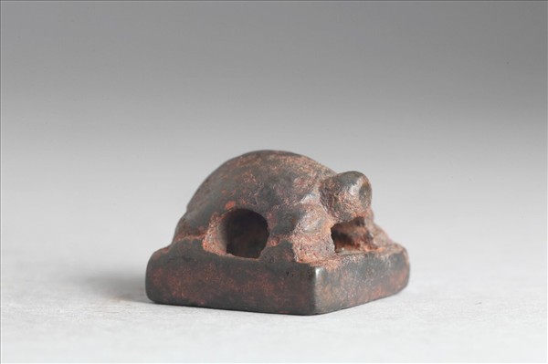 龜鈕,印體中凹而薄,印面「焦肄之印」四字,作白文三字,朱文一字,有白文田字形格欄。