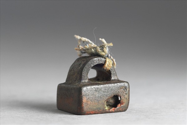 方形銅印,印身局部缺損。瓦鈕繫繩,印面帶有右起順讀白文「韋咸私印」四字。本印置於清乾隆朝「金薤留珍」之五篋其中「府」屜之中。「金薤留珍」乃乾隆朝時將內府所收的前代印記整理編次而成;包含銅官印221件,私印1070件,共1291件,存放於「東」、「壁」、「圖」、「書」、「府」五個黑地金漆龍紋屜匣中,並依各櫃所藏編製印譜。印譜目錄編次方式以官印為始,繼以私印,可能是承襲明顧從德《集古印譜》之編目方法。