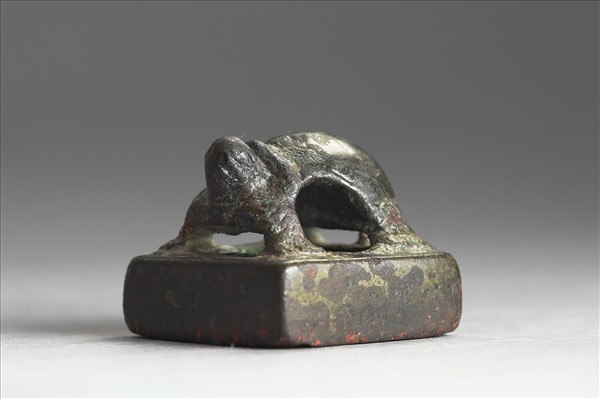 龜鈕,印體稍薄,印面「修躬德以俟賢世興顯令名存」細陽文四行十二字,有邊,屬吉語閑印;羅福頤著《吉璽印概論》書中,收錄一印文與此全同,只是筆畫微粗而清晰,疑是同模所鑄二印。