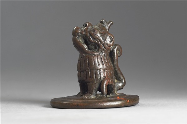 獸鈕,印體圓形而薄,印面作陽文,雙邊,印文為兩條相向的蜿蜒曲線,似龍故名。