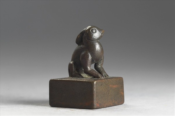 兔鈕,其左耳後垂,右耳未損必微聳,兔首側視,若覺異狀,似聞奇聲,栩栩如生;印面「封」陽文一字,細邊,宜作姓氏解。
