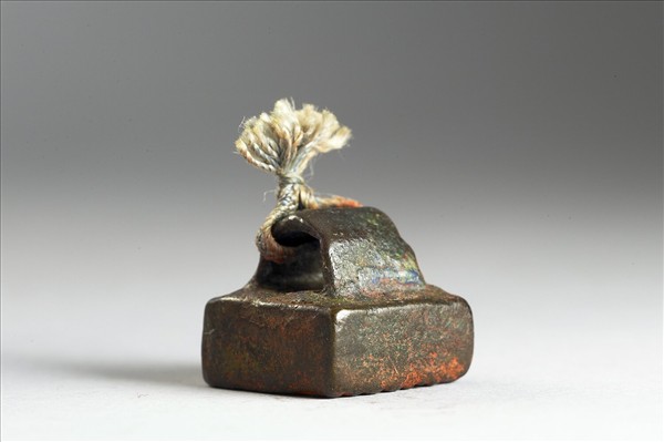 瓦鈕,方面印體中厚,銅中帶紅,鈕上有繫繩。印文「□倫私印」四字白文無邊,篆法工整,為私印。本印置於清乾隆朝「金薤留珍」黑地金漆龍紋屜匣之五篋其中「府」屜之中。