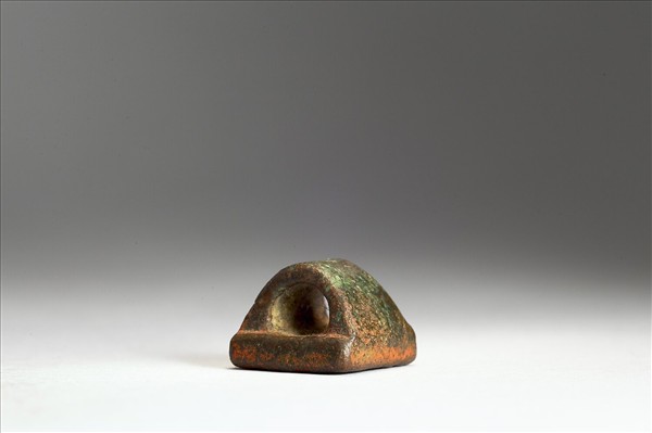 橋鈕,方面印體中薄,銅中帶紅帶綠,印文「高遂之印」四字白文無邊,編排比例右重左輕,印面模糊,整體呈圓巧之感。本印置於清乾隆朝「金薤留珍」黑地金漆龍紋屜匣之五篋其中「府」屜之中,只此一只。