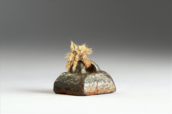 鼻鈕,印背略呈壇狀,銅中帶紅,鈕上有繫繩,印文「□□」二字陽文粗方框。本印置於清乾隆朝「金薤留珍」黑地金漆龍紋屜匣之五篋其中「府」屜之中,屜並附有小冊頁,小冊頁作梵夾式,七開,木質封面有「金薤留珍 府」填綠隸款。內頁除清高宗行書題銘「金薤留珍」四字外,還書有為該屜匣所收銅章品目項類,以及銅章鈐跡、印文釋文等。