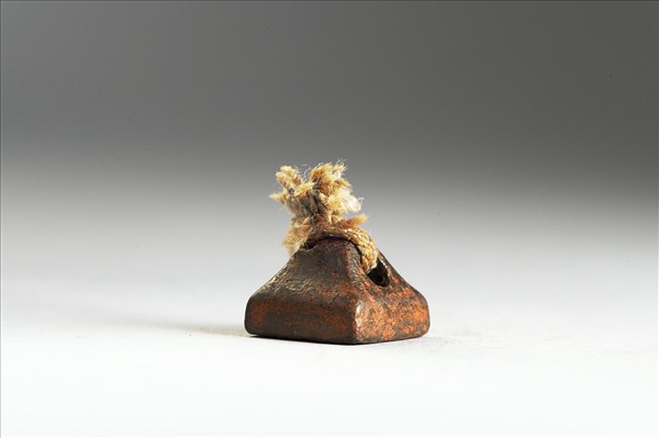 鼻鈕,印體面方,銅中帶紅,鈕上有繫繩,印文「□」作白文方框,古字,具有強烈的指事意涵。本印置於清乾隆朝「金薤留珍」黑地金漆龍紋屜匣之五篋其中「府」屜之中,屜並附有小冊頁,小冊頁作梵夾式,七開,木質封面有「金薤留珍 府」填綠隸款。內頁除清高宗行書題銘「金薤留珍」四字外,還書有為該屜匣所收銅章品目項類,以及銅章鈐跡、印文釋文等。