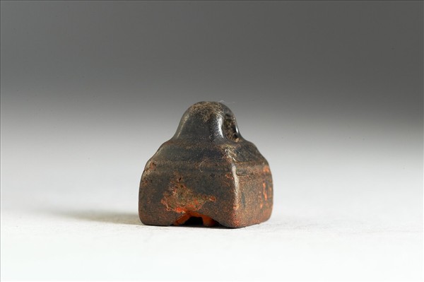 方形銅印,階形印身,印背斜起而呈兩層,鼻鈕。印面帶有邊欄,鑄細長朱文「□□」兩字,文字無法辨識。本印置於清乾隆朝「金薤留珍」之五篋其中「府」屜之中。「金薤留珍」乃乾隆朝時將內府所收的前代印記整理編次而成;包含銅官印221件,私印1070件,共1291件,存放於「東」、「壁」、「圖」、「書」、「府」五個黑地金漆龍紋屜匣中,並依各櫃所藏編製印譜。印譜目錄編次方式以官印為始,繼以私印,可能是承襲明顧從德《集古印譜》之編目方法。