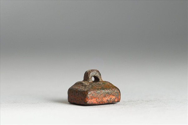 壇鈕,印面「敬」陽文一字,細邊,其字原多視作「悊」(哲),解為敬之意,疑其應從「心」,讀「斤」聲,即屬「敬」字,參見故銅1805之「敬」字,是將「悊」字改為直式,並將「心」移上,此乃商周文字偏旁可移之習,全字雖略簡筆,但字形未變,另又加「攴」,當是「敬」字別體,戰國閑印之一。