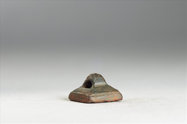 方形銅印,印背斜起,鼻鈕。印面帶陰線邊欄,鑄白文「□□」兩字,文字無法辨識。本印置於清乾隆朝「金薤留珍」之五篋其中「府」屜之中。「金薤留珍」乃乾隆朝時將內府所收的前代印記整理編次而成;包含銅官印221件,私印1070件,共1291件,存放於「東」、「壁」、「圖」、「書」、「府」五個黑地金漆龍紋屜匣中,並依各櫃所藏編製印譜。印譜目錄編次方式以官印為始,繼以私印,可能是承襲明顧從德《集古印譜》之編目方法。