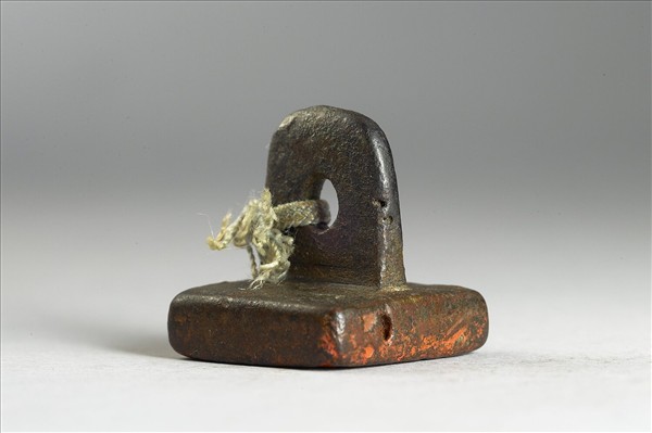 銅質,板狀橛鈕有孔可穿系,印背平板左上角鑿刻漢字「上」作為識別印文方向之用。印面正方形鑄陽文四字,排印方法兼採八思巴字與漢字作斜對角穿插,其順序為:右上以八思巴字篆體對譯漢字「勘」,右下為漢字九疊篆「合」字,左上作漢字九疊篆「印」,左下是八思巴字篆體對譯漢字「記」,四字連讀成「勘合印記」。這種以漢字九疊篆與八思巴字篆體混用的形式,審視現今存世的印可梳理出有一共通現象,即是混用的漢字九疊篆可與八思巴字篆體取得相當協調的排印空間,如果從排印的章法藝術作考量,或許這正是這類印章產生的原因。