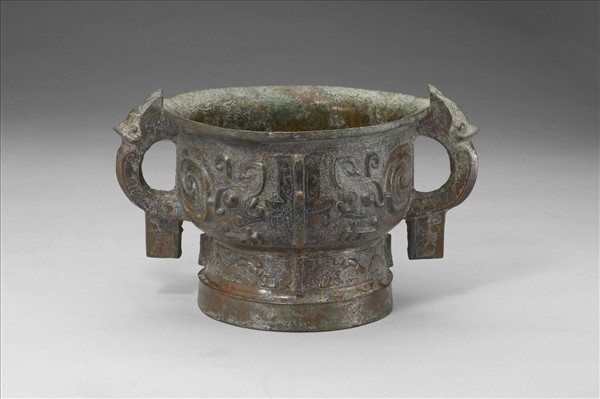 侈口,直壁深腹,獸首半環耳下垂方珥,高圈足。腹飾左右相對的蝸身獸紋,口部大張,中有上下交錯的立體獠牙。圈足飾夔龍紋。蝸身獸紋多見於西周初期的銅簋,並集中出土於陝西寶雞、岐山地區,如陝西寶雞戴家灣、涇陽高家堡一號墓等遺址。本院另藏一件同款蝸身獸紋簋(故銅2123),尺寸、重量相當,原應為同組器。