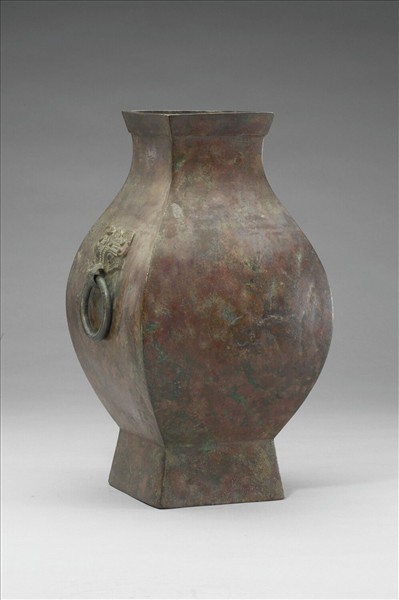 全器作方形,侈口,縮頸,鋪首銜環耳,鼓腹,高圈足。