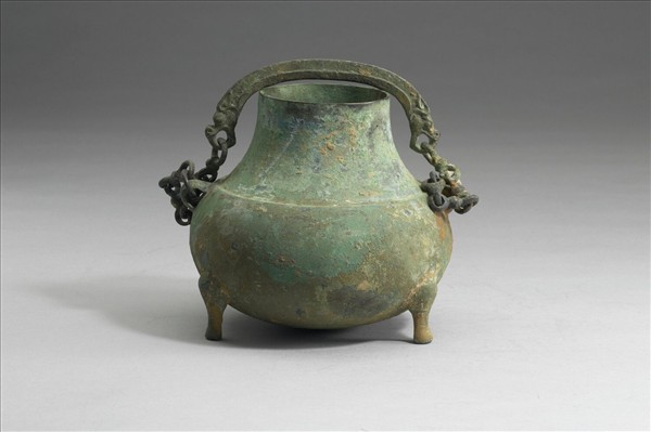 縮頸,折肩,鼓腹,蹄足,頸側出雙耳,耳內鏈接雙龍形提粱。