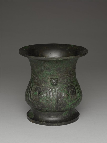 敞口、口下飾仰葉夔紋四,頸飾顧首夔紋一道,間以二獸首。下腹外侈,飾顧首卷尾大鳳鳥紋,銘文一行四字:「作寶尊彝」,本器的矮體尊式、卷尾鳳紋與整飭少奔放的銘文書風,都是西周中期新興的藝術型態。