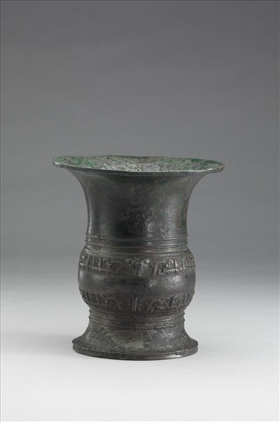 侈口,直頸,鼓腹,圈足外撇,近底處起淺臺。腹部上下間以兩道弦紋,腹飾兩圈長尾回首夔鳳紋,上層正中飾一浮雕獸首,下層以短扉棱為界。器外底為方格紋。形制、紋飾與陝 西長安灃西張家坡西周墓地出土銅尊(M163:36)相似。器內底銘文三行,由左起讀:「欼休于□季,受貝二朋,揚厥休,用作考伐父尊彝。」
