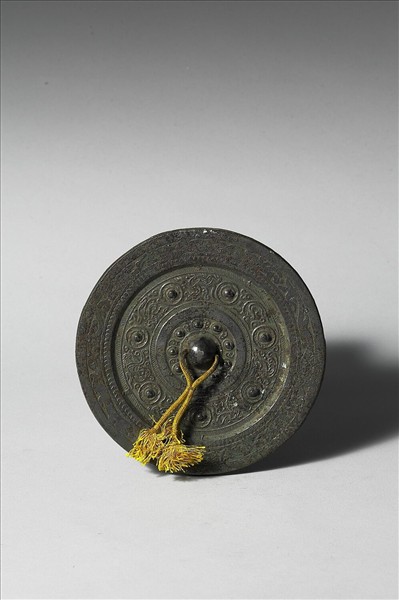 圓鏡,半球鈕、圓鈕座。鈕外有連珠紋,鏡背飾乳丁與細線簡化獸紋,鏡緣則有三角形紋與變形雲紋。