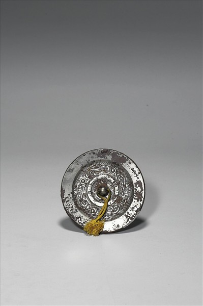 圓鏡,半球鈕,柿蒂形座。主紋以四個圓座半球乳丁為界,間以細線勾勒的S形虺龍紋。外緣寬厚平素。