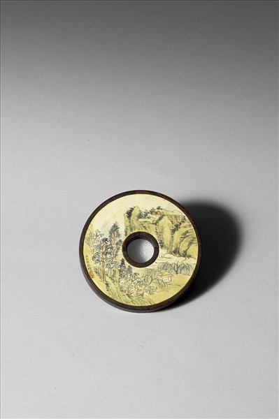 〈西清續鑑〉鏡匣雕刻木蓋附弘旿〈山水〉