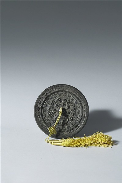 圓形鏡,半球鈕,圓鈕座。主紋飾區為東漢晚期流行的八枚環狀乳丁配高浮雕神仙瑞獸紋樣。共分為四區,東王公與另一缺損的浮雕神人(通常為西王母) 相對,左右各伴以瑞獸。另兩區分別為伯牙彈琴及黃帝與侍者。主紋飾區外環以十一方枚銘文:「吾作明竟(鏡),子孫番(繁)昌,師命長。」每字間為帶有圓渦紋的半圓鼓形枚。鏡緣兩層,內圈為描繪日月運行的六龍駕雲車圖像,細緻繁密。外圈飾圓渦紋及雲紋。這種高浮雕神仙瑞獸鏡流行於東漢晚期至魏晉時期。滿布畫面的神仙、神靈動物及理想高士均極具動感,充分表現了東漢晚期對神仙世界的建構與嚮往。就細節觀之,本鏡雖精確傳達漢魏神仙瑞獸鏡的型制及紋飾,但澆鑄位置與漢魏銅鏡不同,且紋飾細節似有翻模痕跡,應為明代工匠利用古鏡做模,直接翻鑄而成。鏡背四個半圓鼓形飾上有難以辨識的刻寫文字,似為「□忻取作」。