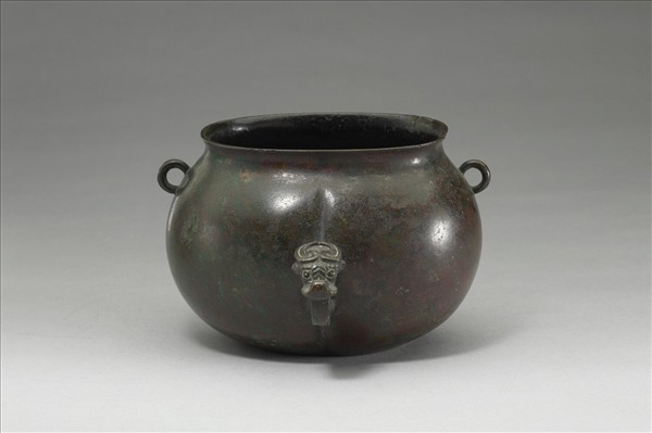 侈口,縮頸,環耳,平底,腹呈圓球體,腹下側出一獸首耳。