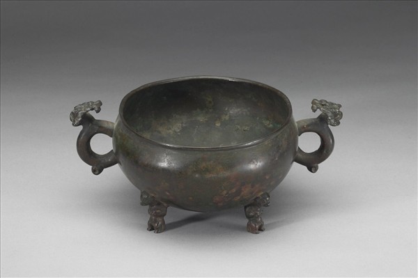 金和,斂口,微縮頸,環耳,獸足。環耳上端側出獸面,獸足作鳥首立姿馱物狀。