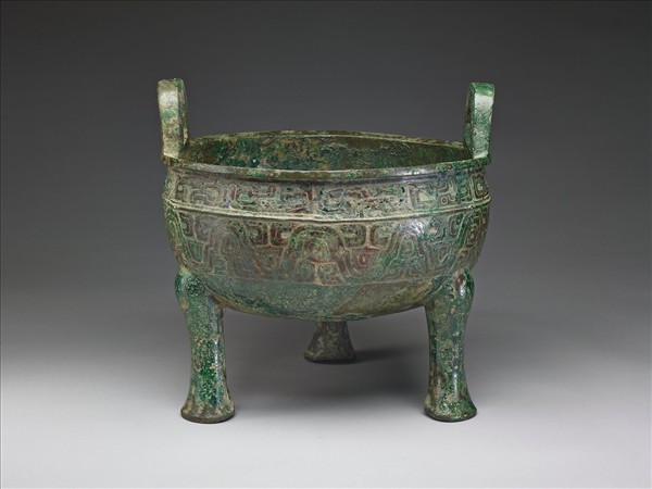 口微斂,平折沿,直立耳,鼓腹,圜底,蹄足。腹外壁飾竊曲紋及波曲紋。器內壁銘文局部為假鏽遮蓋。本院藏兩件〈芮公鼎〉,形制、紋飾相同,尺寸、重量遞減,應原屬列鼎,兩器皆著錄於《西清古鑑》。芮公器除傳世器外,亦有考古出土者,見於陝西韓城梁帶村芮國墓地,與〈芮公鼎〉形制、紋飾可資比對者,如十九號墓出土銅鼎(M19:186)。