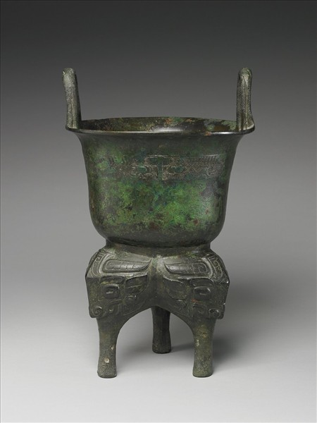 甗,甑鬲連體,撇口,器口呈三角狀之圓形,腹底空而近三角形,各邊有一小三角形橫檔;後足上之腹內底部有一環鼻,勾住橫隔的箅板,箅板上有五個鏤空「十」字形孔,並設一鼻鈕以便掀提。口沿下飾目雷紋一道,足飾獸面紋,耳作綯紋。腹內壁有銘二行六字。