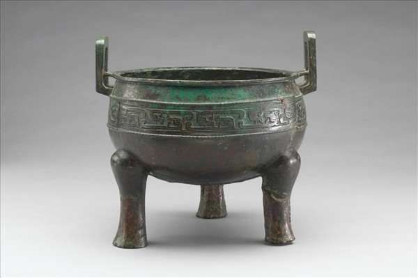 盤口,附耳,深腹,蹄足,腹呈圓球體。腹飾夔紋,上下為凸弦紋。腹範線明顯。外底範線明顯。