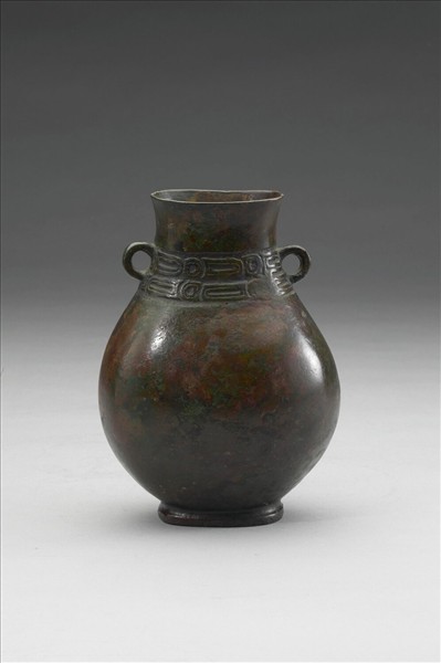 鈚,侈口,環耳,鼓腹,圈足。腹飾重環紋。