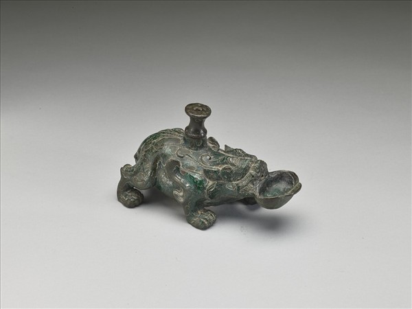 全器作異獸形,頭頂有雙角,身側有雙翼,口銜一耳杯,器腹中空,動物的背部有一孔,孔內插一管柱,依虹吸原理可自腹腔汲水。