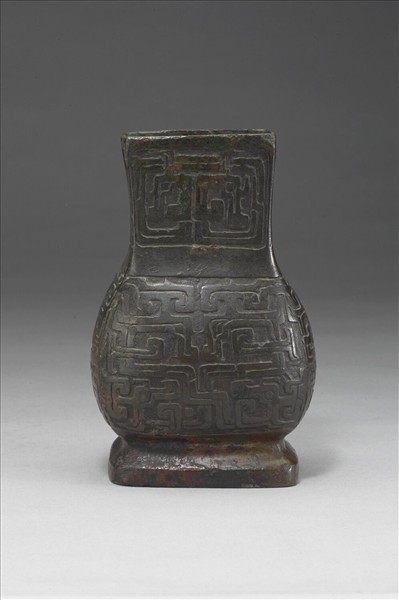 扁壼,方口,直頸,鼓腹,圈足,腹橫剖面近似橢圓形。頸、腹飾夔紋。