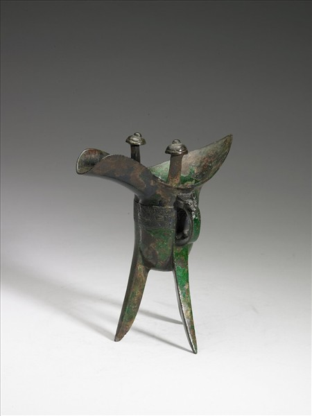 長流,尖尾,菌狀立柱,深腹卵底,獸首鋬,三足斷面作三角形,足背較寬。器身飾兩組分解獸面,獸目圓凸。形制、紋飾與山東滕州前掌大墓地出土銅爵(M11:108)相類。銘文在鋬內。帶有該族氏銘文的銅器數量頗多,出土地點廣,時代跨越殷墟二期至西周早期。