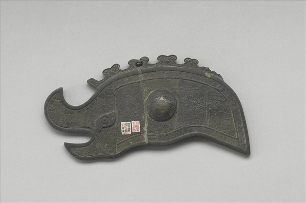 全器作片狀魚形,眼作臣字形、張嘴、有鰭、尖尾。器外圍飾雷紋,以夔紋為地,腹飾浮雕圓渦紋。