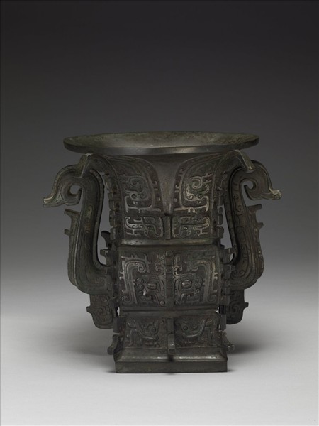 本器製作年代在西周昭王、穆王時期。和傳統形制相比,於器腹兩側有向上延伸彎轉的象鼻形雙耳,設計罕見。紋飾線條華麗,不論是頸部上方倒立對稱的回首鳥紋、下方的對稱龍紋,腹部的卷角獸面紋,還是底座左右對稱的鳥紋,都以富有張力的曲線勾勒;紋樣輪廓多以勾轉的羽紋設計,產生圓轉的動態感,同樣的羽紋也以鏤空高浮雕的形式,裝飾在方尊四邊方折的稜線上。腹部內底鑄銘三行十四字:「服肇夙夕明享,作文考日辛寶尊彝。」大意是說本器主人「服」為了紀念先父「日辛」,而鑄製此件宗廟禮器,用以早晚向先祖獻祭酒食。